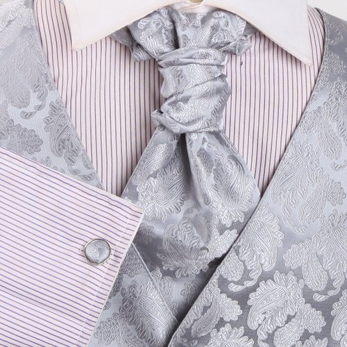 Cyber Monday Mens Designer Silver Paisleys Tuxedo Vest Set Match Tuxedo Vests ,cufflinks, hanky and Ascot Tie for Suit Y&G VS2006-M Medium Silver Sale