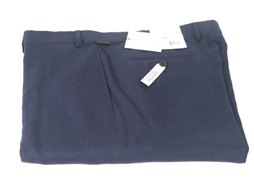 (^o^) Cyber Monday Calvin Klein Mens Flat Front Solid Dark Blue Linen Dress Pants - Size 42 Sale